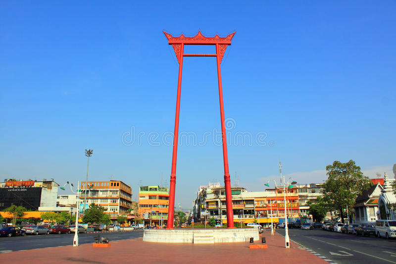 Standing on a circular stone platform overlooking the Wat Suthat temple in Bangkok are a pair of 21 metre high red posts.