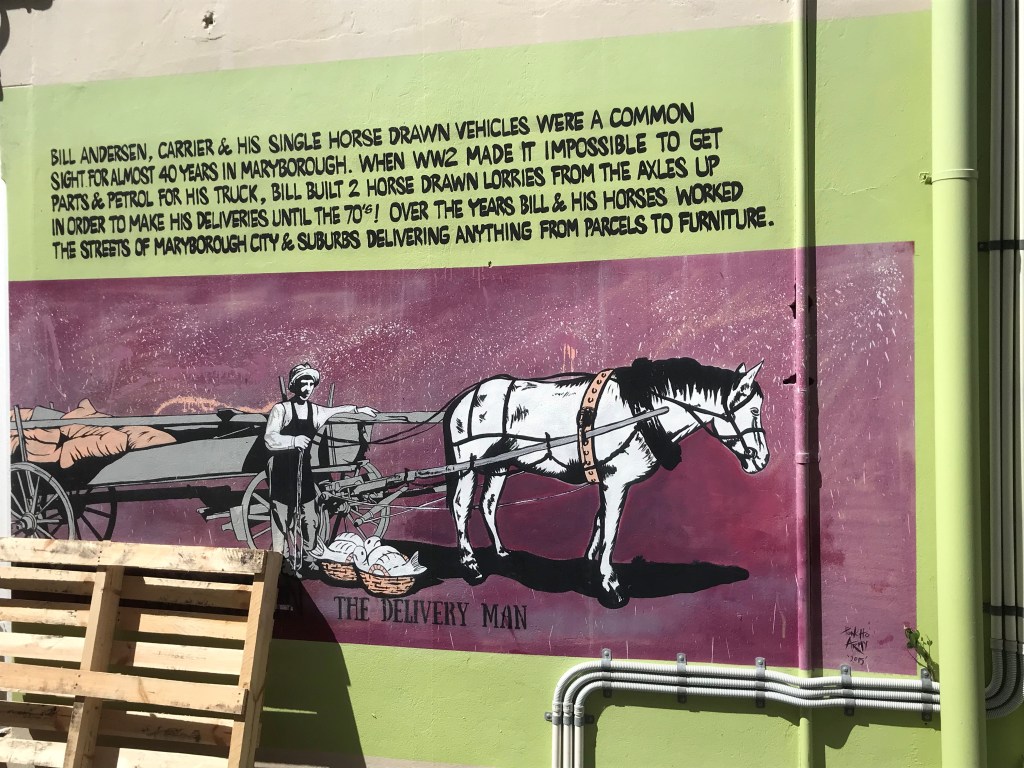 Today, almost 12 months after that first flood, Maryborough is piecing itself back together but scaffolding, empty storefronts and closed businesses are a common sight. One thing not affected by the floods has been the Maryborough Mural Trail, a collection of street art that celebrates the history, wildlife and quirky characters of the area.