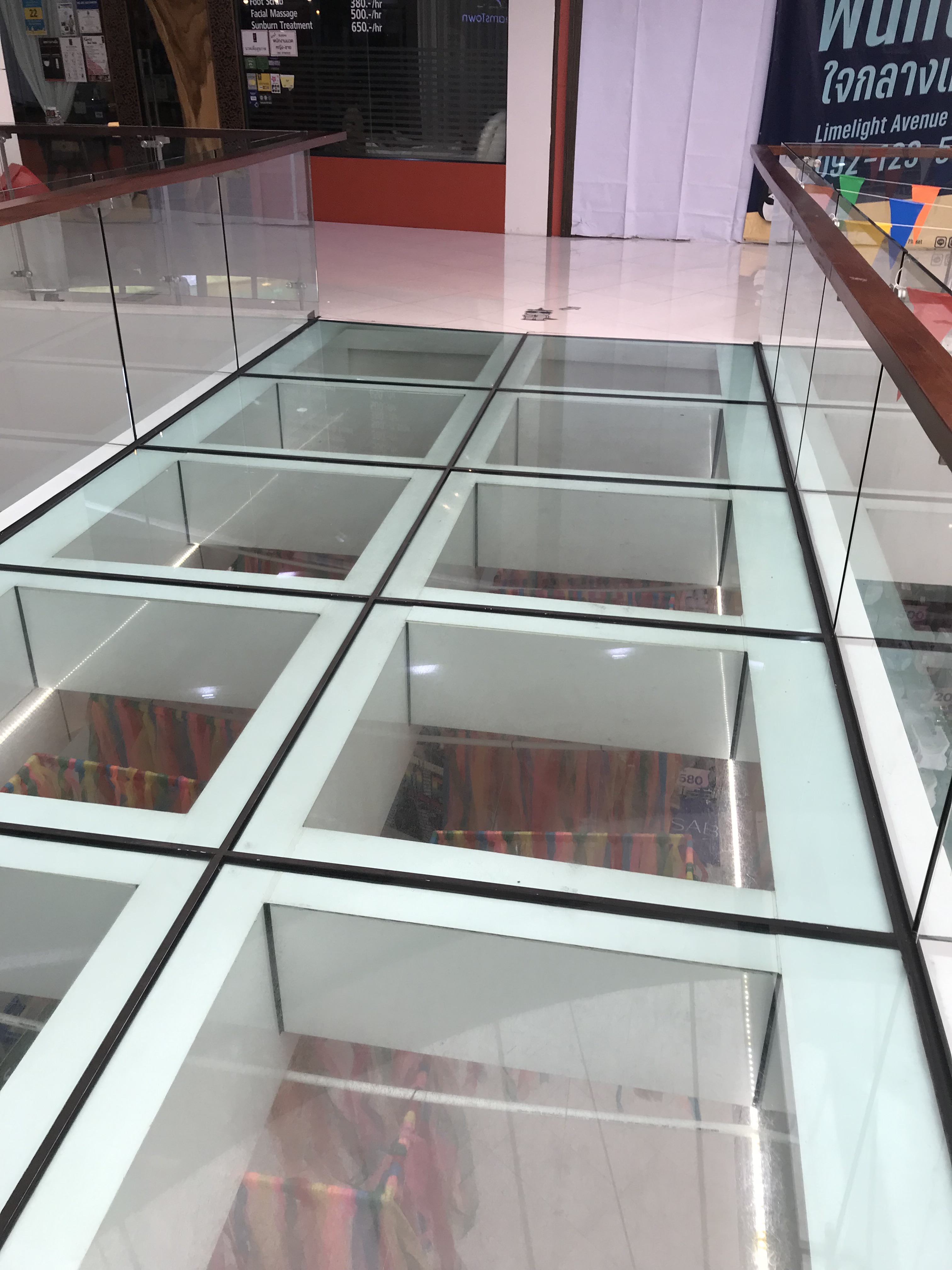 This is a transparent plexiglass walkway located on the second floor of the Limelight shopping centre in Phuket. It gives anyone walking across it a birdseye view of random scalps. It gives everyone walking below it…well, a view they will never be able to unsee should they cast their eyes upwards at the wrong moment.