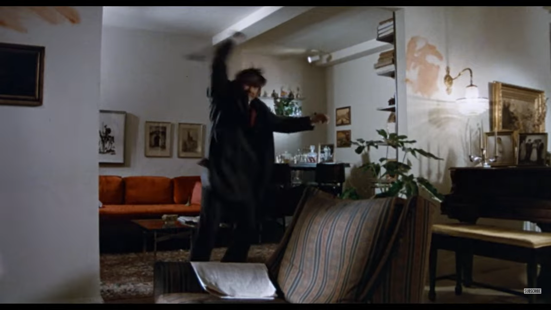 This brief burst of non-lethal violence appears to pull Paul from his funk. When he returns to his apartment he bounces around in child-like glee, apparently having found a kind of catharsis in his act of self-defence.