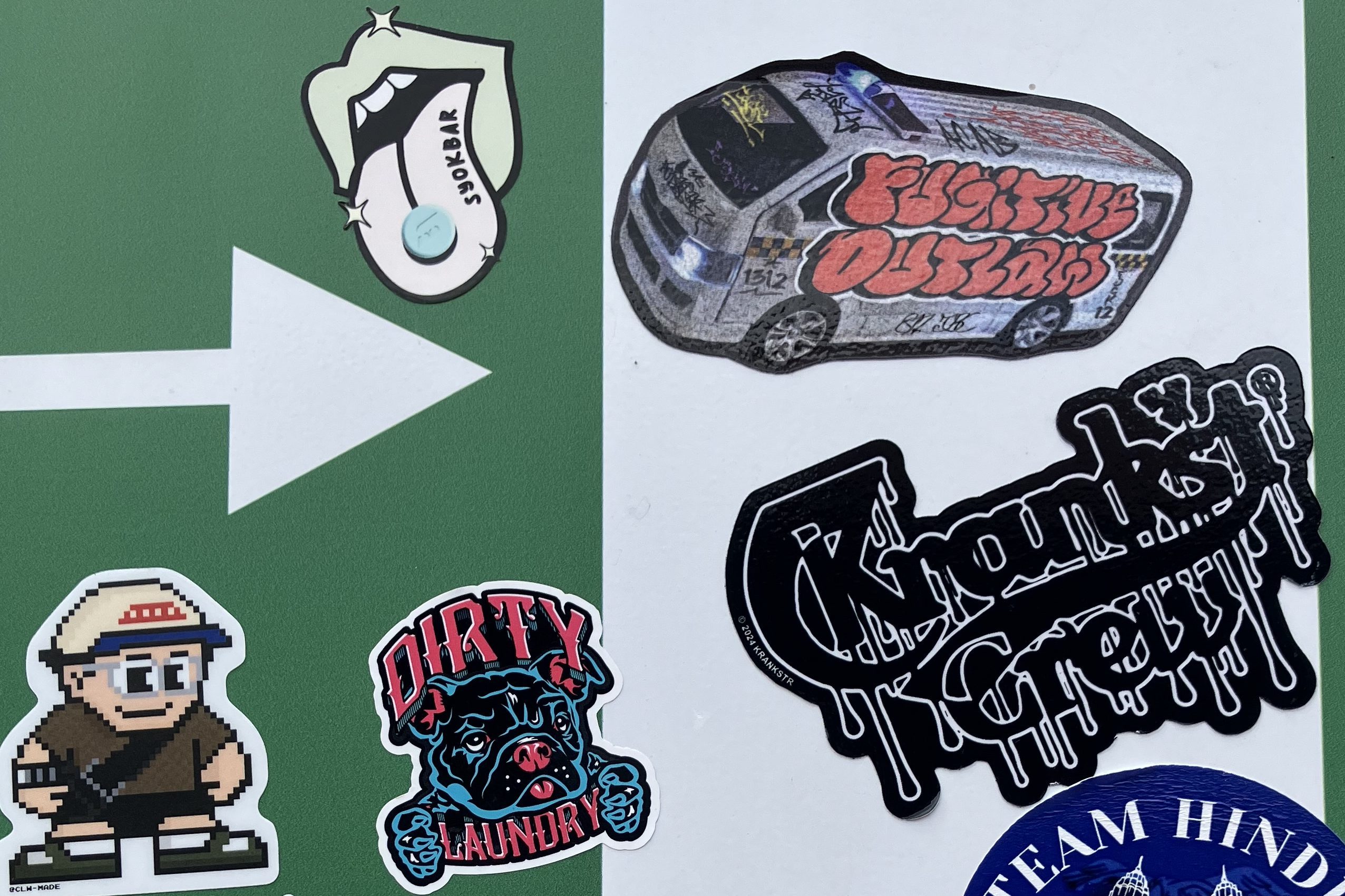 Early stickers were usually the artist’s tag on paper stickers or wheat-paste posters. Gradually, as more artists adopted the medium, sticker designs became more professional, unique and colourful.